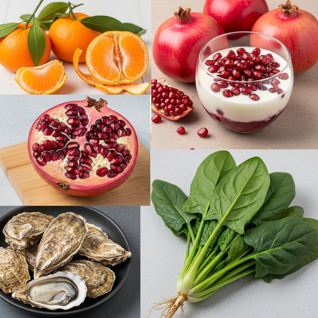 - 비타민 C & 아연: 면역력 강화에 필수적인 비타민 C (귤)와 아연 (굴) 충분히 섭취.