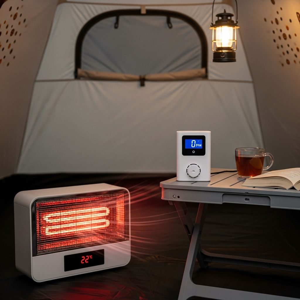 - 팬히터: 전기를 사용하며 빠르고 고르게 텐트 내부를 데워줍니다. 안전하고 사용이 편리해요.