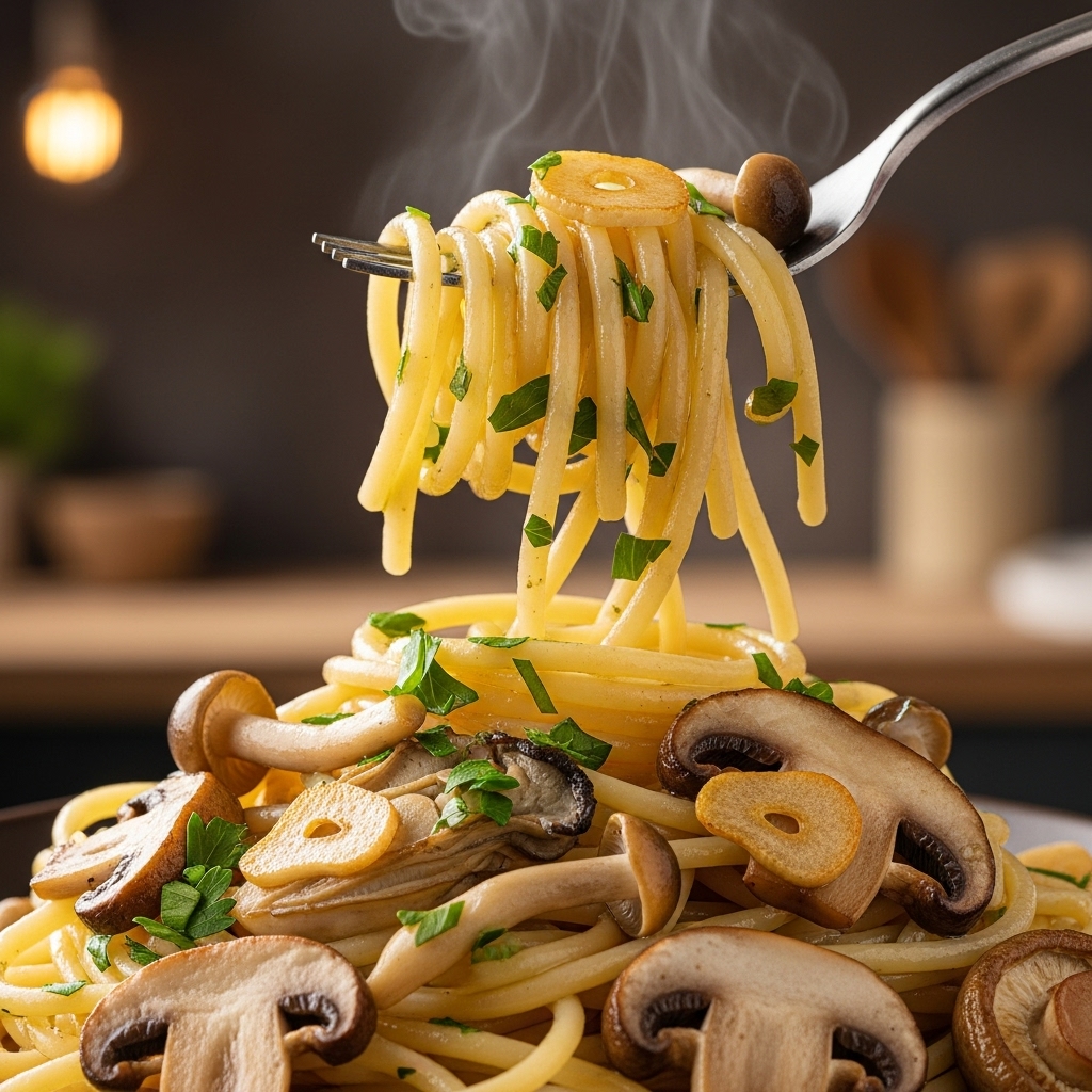 - 재료: 남은 버섯(종류 무관), 파스타 면, 마늘, 올리브유, 소금, 후추, 파슬리(선택)