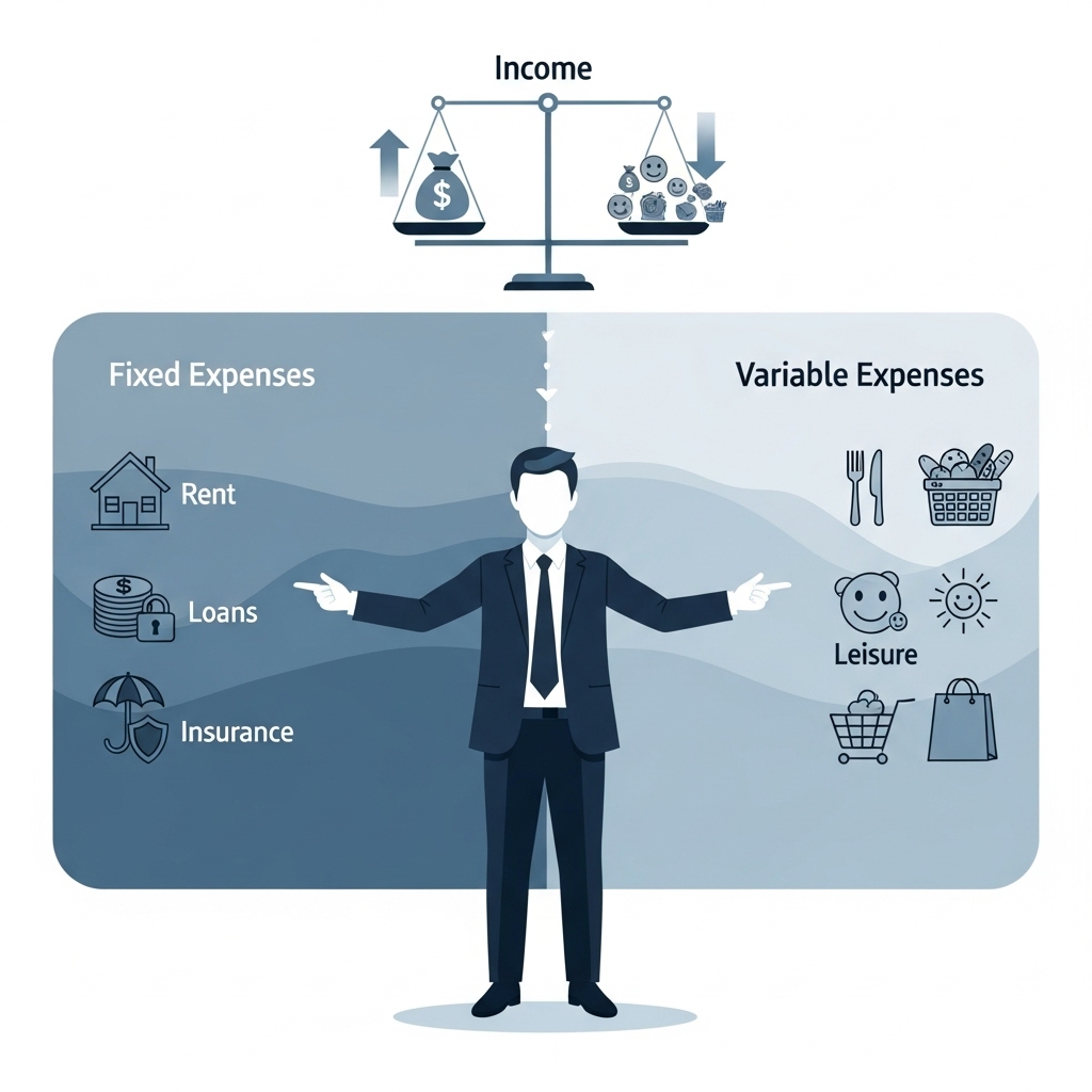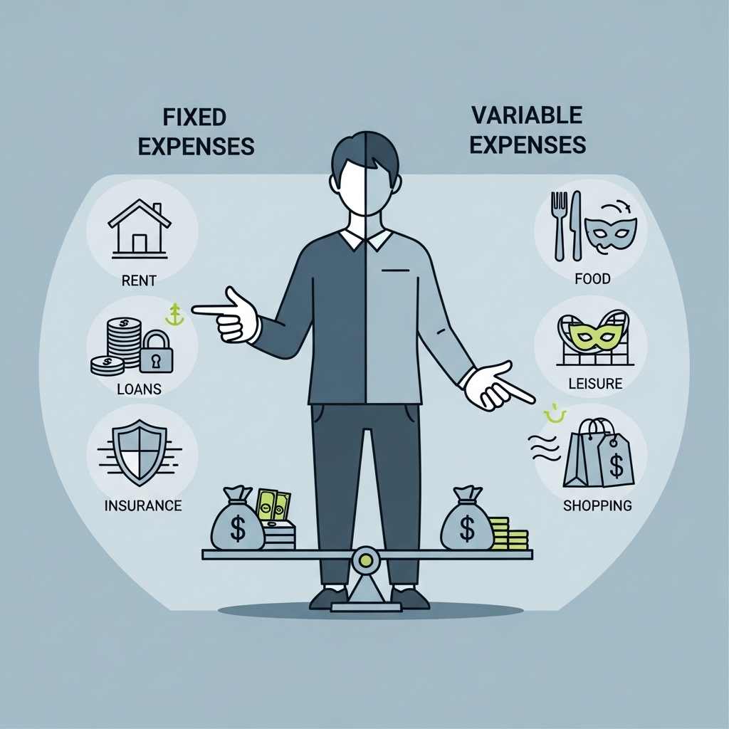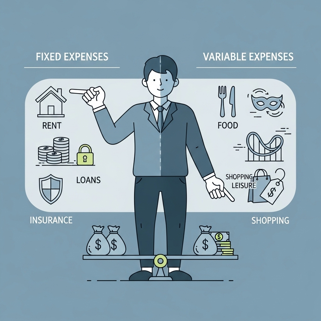 - 고정 지출: 매달 거의 변동 없이 나가는 돈 (월세, 대출 상환금, 보험료, 통신비 등)