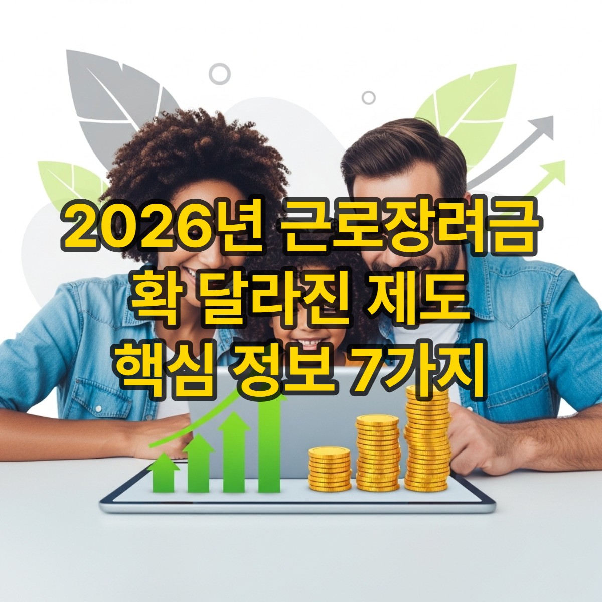 - ✅ 2026년 근로장려금, 소득·재산 기준 대폭 완화! 더 많은 가구가 혜택을 받을 수 있습니다.