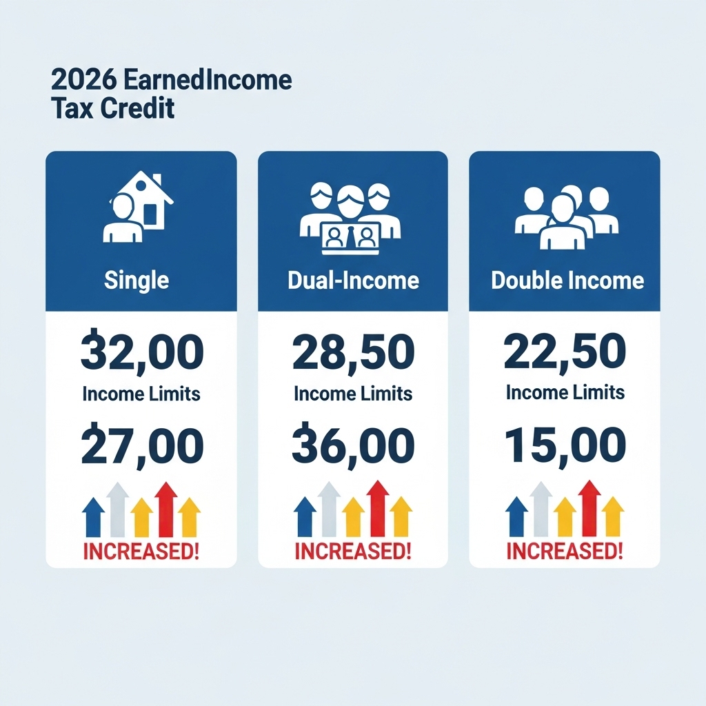 가장 많은 분들이 관심을 가질 소득 기준입니다. 2026년 근로장려금은 직전연도(2025년)의 연간 총소득을 기준으로 합니다. 이번 개편으로 각 가구 유형별 소득 상한이 다음과 같이 확대될 예정입니다. (정확한 금액은 법령 확정 후 발표되지만, 현재 예상되는 상향폭을 기준으로 설명해 드립니다.)