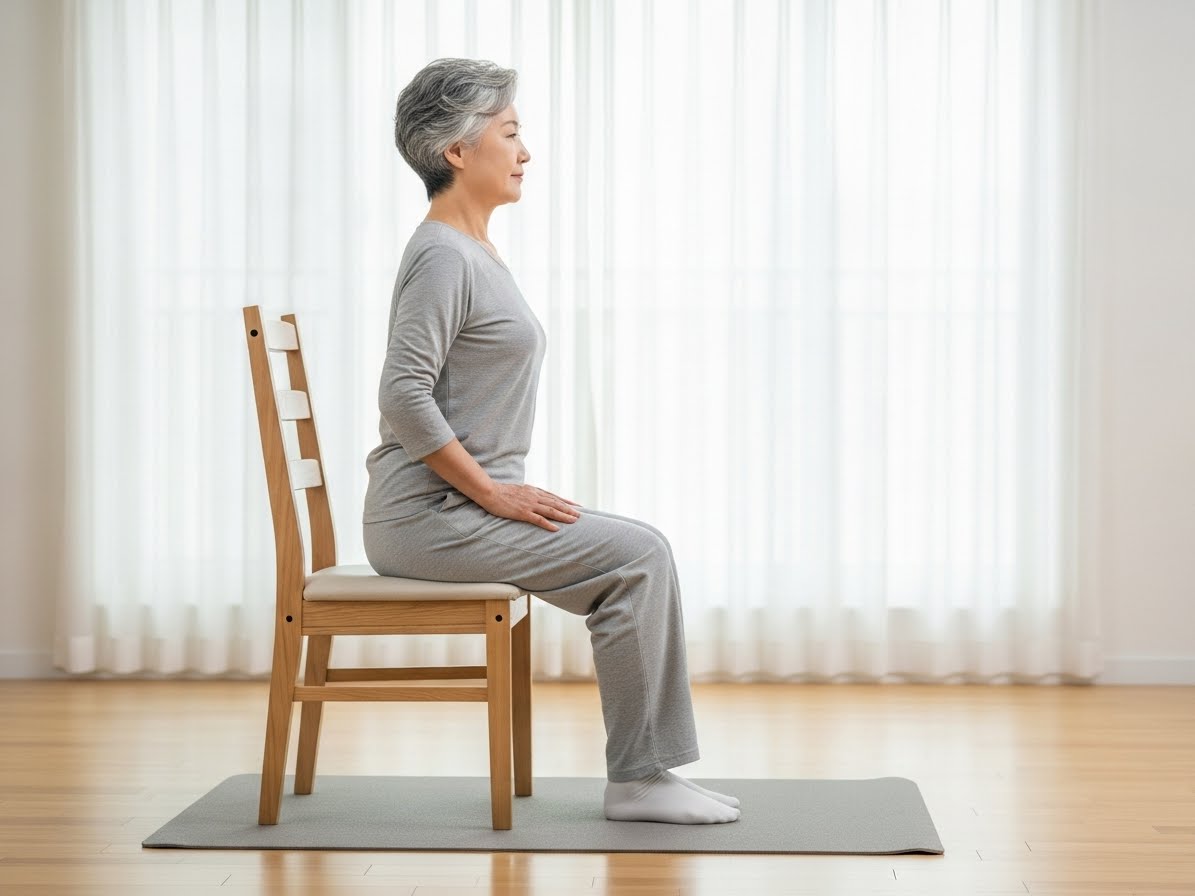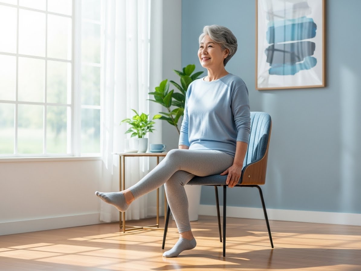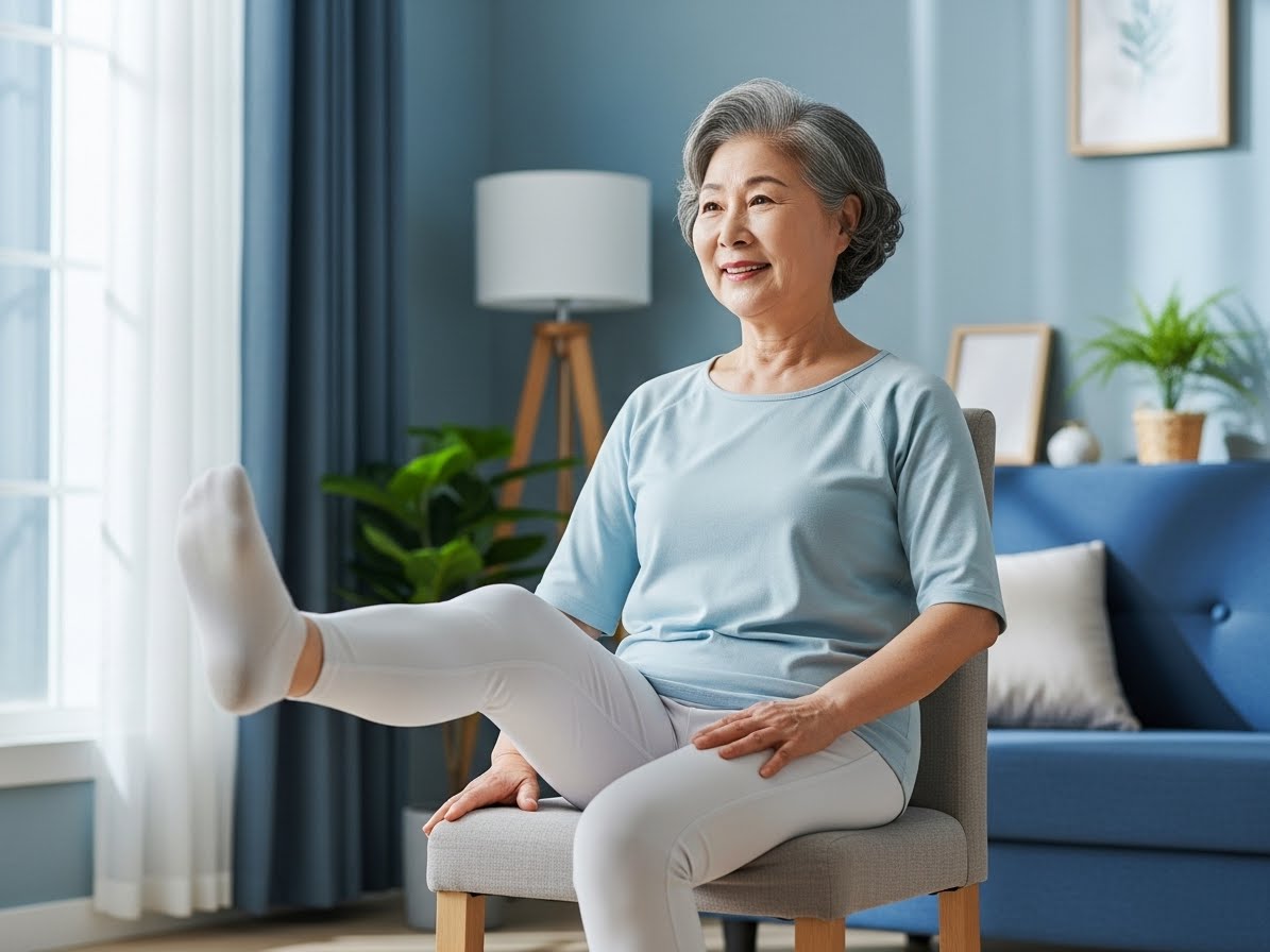이 운동은 허벅지 앞쪽 근육과 코어 근육을 강화하여 다리의 안정성을 높여줍니다. 의자에 앉아서 진행하므로 비교적 안전하게 시작할 수 있습니다.