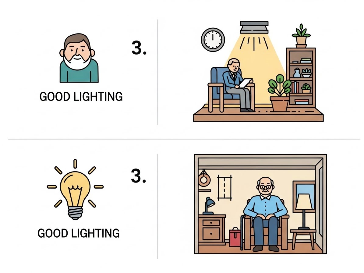 운동만큼 중요한 것이 바로 안전한 주거 환경 조성과 올바른 생활 습관입니다. 집 안팎에서 발생할 수 있는 낙상 위험 요소를 미리 제거하여 안전한 환경을 만드는 것이 중요합니다.