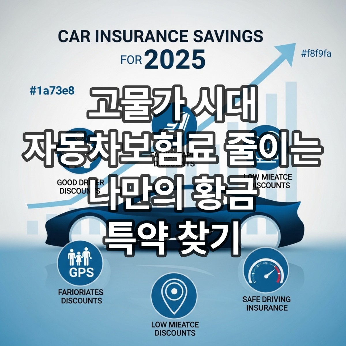 고물가 시대, 월급만 빼고 모든 것이 오르는 현실 속에서 자동차보험료는 더 이상 무시할 수 없는 고정 지출이 되었습니다. 2025년, 현명한 소비자들이라면 놓치지 말아야 할 자동차보험 할인특약 조합의 모든 것을 공개합니다. 똑똑하게 보험료를 절약하고, 불안한 경제 상황 속에서도 든든하게 차량을 운행하세요!