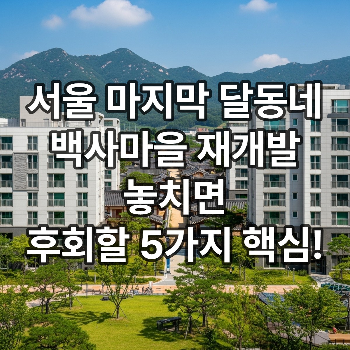 아래 버튼을 눌러 백사마을 재개발의 주요 핵심 포인트들을 자세히 살펴보세요!